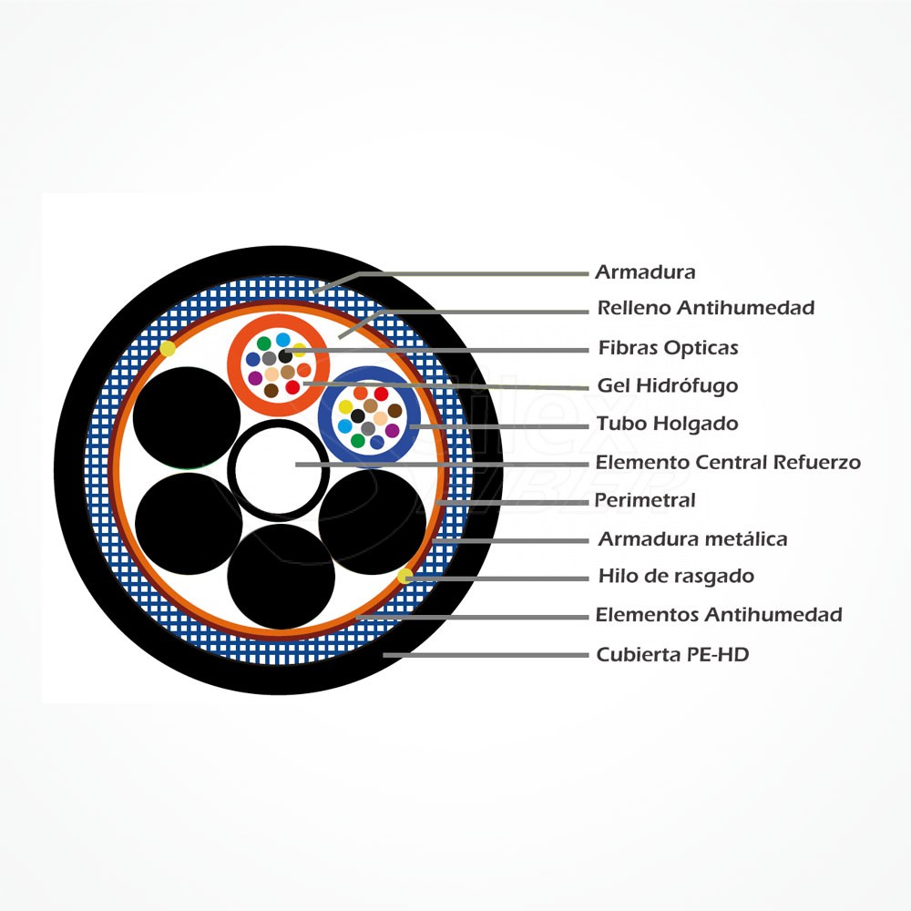 Está diseñado con Armadura de Acero con protección antiroedor, consiguiendo mayor protección mecánica frente a los roedores u otros elementos adversos, igualmente de estructura holgada, recubrimiento en 250μm, elemento de tracción miembro central reforzado y protección armadura metálica corrugada y cubierta PE UV con alto grado de resistencia ante ambientes metereológicos externos